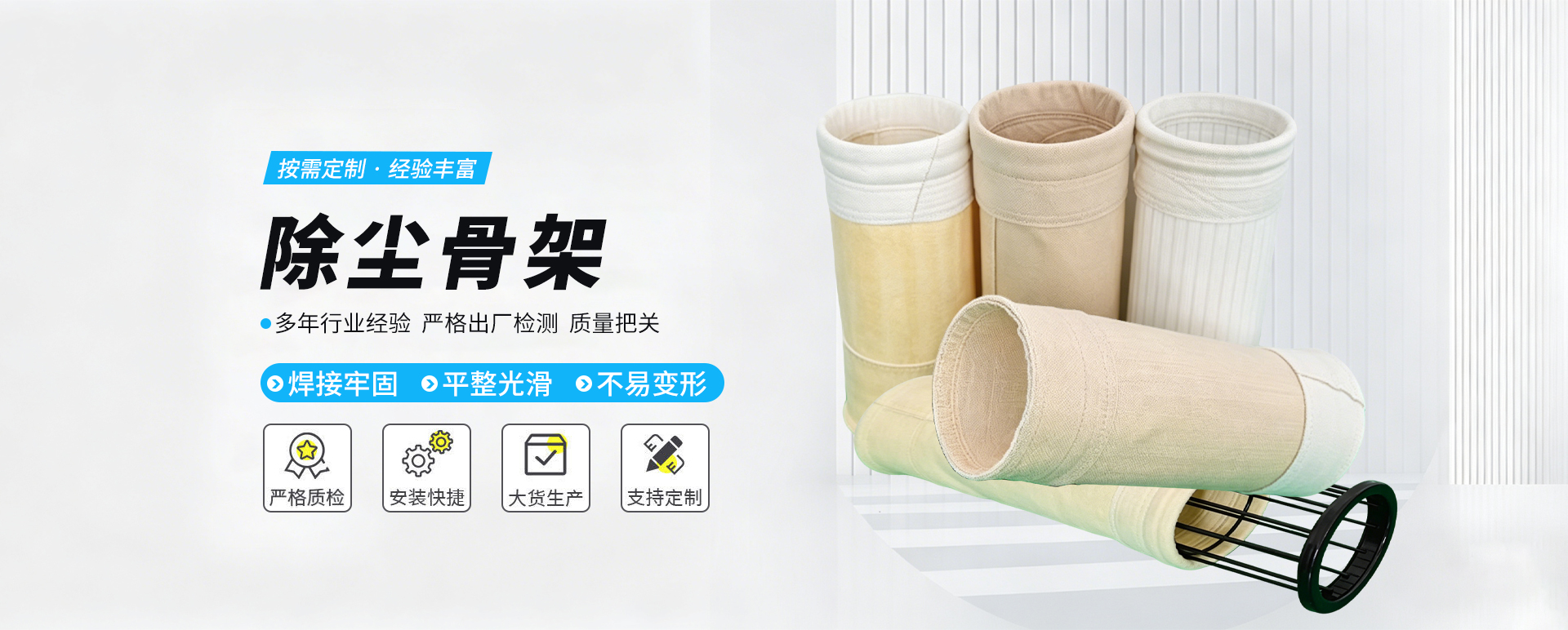 公司历来重视产品质量,视质量为企业生命,具有专业安装设备和售后服务体系,生产常温、中温、高温三大系列上百个品种的过滤材料及袋笼等各种环保附件。